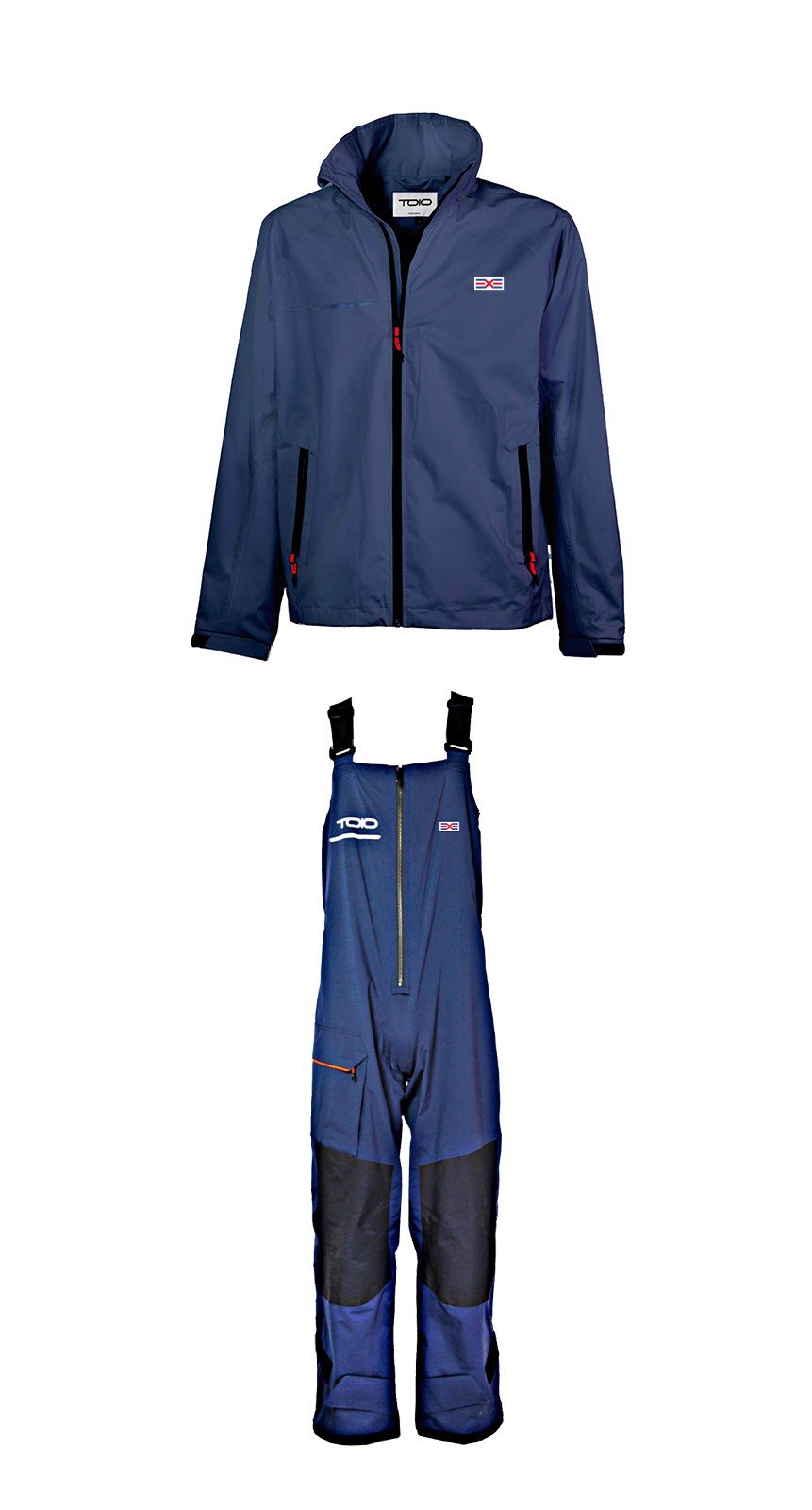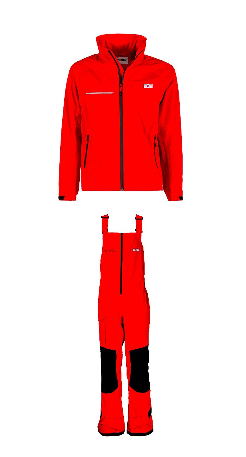 Giacca cerata e salopette impermeabili e traspiranti in tessuto elasticizzato, totalmente termonastrate.